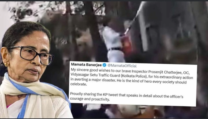 কলকাতা, ২৭ ফেব্রুয়ারি ২০২৬: খিদিরপুরের ব্যস্ত রাস্তায় তখন আতঙ্কের চিৎকার। একটি চলন্ত বাসের ছাদে দাউদাউ করে জ্বলছে আগুন, আর নিচে আটকে রয়েছেন দিশেহারা যাত্রীরা। ঠিক সেই মুহূর্তে দেবদূতের মতো আবির্ভূত হলেন ওয়াটগঞ্জ থানার ওসি। কোনও দমকলের অপেক্ষা না করে, নিজের প্রাণ বিপন্ন করে বাসের ছাদে উঠে পড়লেন তিনি। তাঁর এই অদম্য সাহসের কাহিনী এখন নেটপাড়ায় ভাইরাল, খোদ মুখ্যমন্ত্রী মমতা বন্দ্যোপাধ্যায়ও কুর্নিশ জানিয়েছেন এই বীর পুলিশ অফিসারকে।