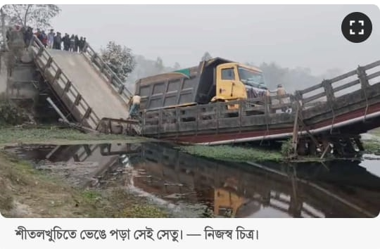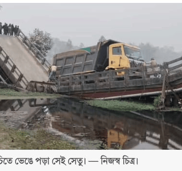 ডাম্পার বোঝাই ভেঙে পড়ল ব্রিজ, শীতলকুচিতে ব্যাপক যানজট