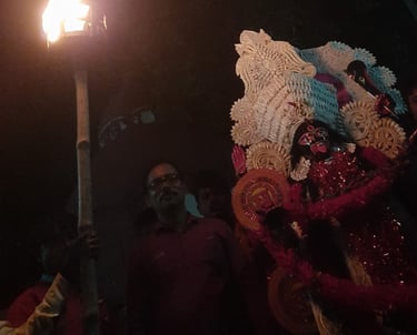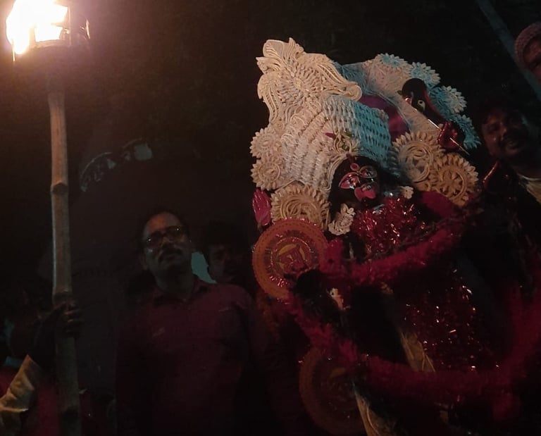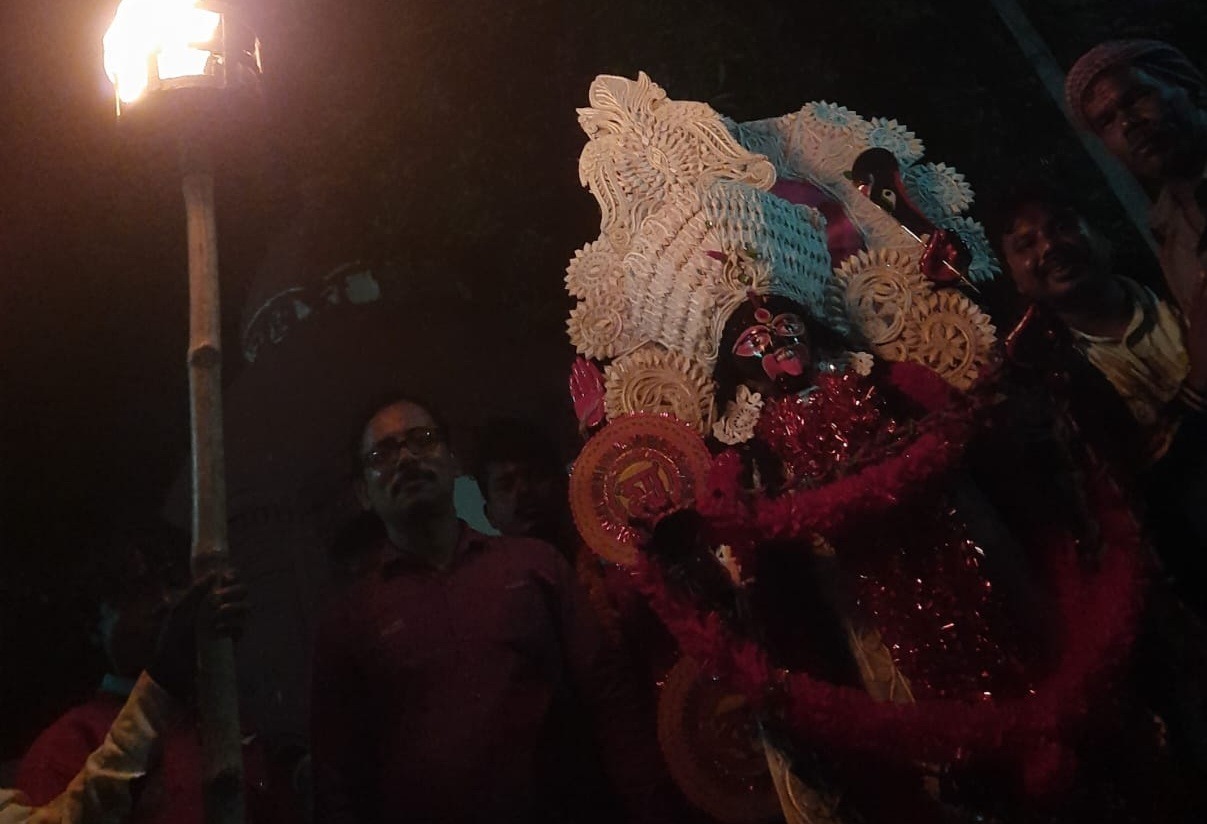 পুজোর পরের দিন মশালের আলোতে নাচতে নাচতে বিদায় নেন দেবী