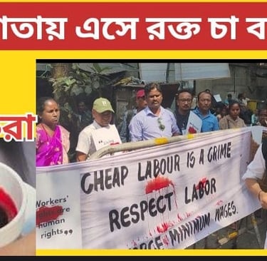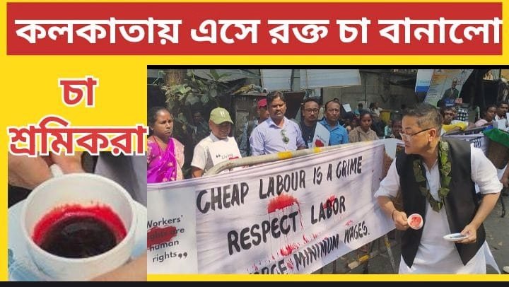 এদিন উত্তরবঙ্গের বিভিন্ন চা বাগান থেকে কয়েকশো শ্রমিক কলকাতার নব মহাকরণের সামনে বিক্ষোভ প্রদর্শন করেন। তাঁদের অভিযোগ, যে চা খেয়ে মানুষ সতেজ হন, তার প্রতিটি পাতায় মিশে আছে শ্রমিকদের হাড়ভাঙা খাটুনি, ঘাম আর রক্ত। অথচ বিনিময়ে জোটে নামমাত্র পারিশ্রমিক। এই বঞ্চনা বোঝাতেই প্রতীকীভাবে ‘রক্ত দিয়ে চা’ বানিয়ে প্রতিবাদ জানান তাঁরা।